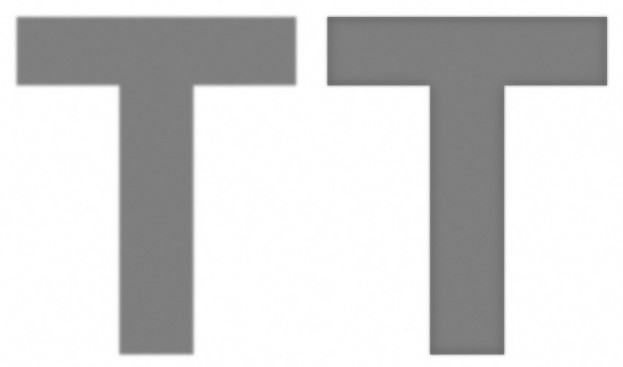 هر دو حرف T رزولوشن یکسان ولی تفکیکپذیری متفاوتی دارند. شارپ بودن به این ختم میشود که جزئیات یک تصویر چقدر واضح بهنظر میرسد، بخصوص جزئیات کوچک و ریز. برای مثال، اگه مژههای سوژه بصورت تاری سیاه نامعلوم باشه، تصویر شارپ و واضح بهنظر نمیاد. از طرف دیگر، اگه بتوانید هر کدوم از آنها را جدا گانه انتخاب کنید، اکثر افراد این تصویر را شارپ و واضح درنظر میگیرند. کدوم یکی از حرف T شارپتر بهنظر میرسند؟