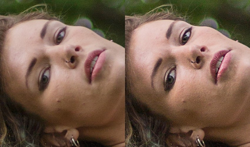 تصویر سمت چپ فایل خام و پردازش نشدهای است که مستقیما از دوربین بیرون آمده است و تصویر سمت راست شارپ شده است ( تمام رنگ بخشیها color toning و مراحل رتوش برای بهترین مقایسه برداشتهایم).