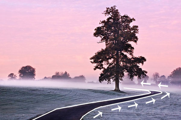 خطوط هدایتگر لزوما نباید مثل عکس بالا بصورت مستقیم باشند. در واقع خطوط منحنی می توانند ابزار ترکیب بندی بسیار جذابی باشند. در این جا، این راه، بیننده را ابتدا به سمت راست کادر هدایت می کند و سپس به چپ، به سمت درخت می چرخاند. به علاوه هنگام گرفتن عکس از قانون یک سوم هم استفاده کرده ام.
