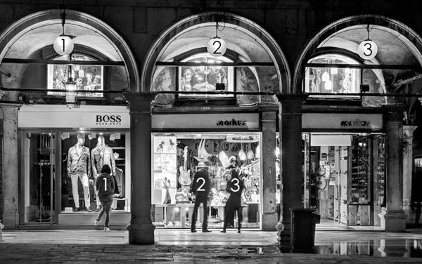 در عکس بالا از دو قایقران در ونیز، خواهید دید که من به طور کامل قاعده ی فردها را نادیده گرفته ام. این درست است که احتمالا توجه شما به عقب و جلو بین دو قایقران حرکت می کند. با این حال این دقیقا شبیه یک مکالمه بین دو نفر است، یک رفت و برگشت. به همین دلیل، من فکر می کنم استفاده از تعداد زوج افراد در این مورد موثر بوده است.