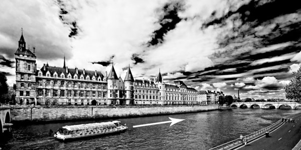 در این تصویر از برج ایفل، من از الگوهای روی سنگ فرش به عنوان خطوط هدایتگر استفاده کرده ام. همه خطوط روی زمین، چشم های بیننده را به سمت برج ایفل درفاصله دور هدایت می کنند. همچنین توجه کنید که من از یک ترکیب بندی مرکزی برای این صحنه استفاده کرده ام. تقارن محیط اطراف من سبب شده این نوع ترکیب بندی خوب از آب درآید.