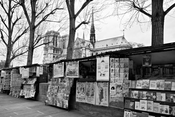 به این عکس گرفته شده در پاریس نگاهی بیاندازید. در نیمه پایین کادر، ما پایه نگهدارنده ی کتاب نسبتا زمخت در هم و برهم و پوسترهای آویزان از بالا را داریم. و بالاتر از همه این ها کلیسای با شکوه جامع نوتردام متعلق به قرون وسطی وجود دارد. این گوهر معماری مظهر نظم و ساختار است بر خلاف پایه نگهدارنده کتاب ساده اما جذاب که در زیر آن قرار دارد. به نظر می رسد این دو نماد در تقابل مستقیم با یکدیگر هستند و در عین حال درکنارهم به خوبی جلوه می کنند. هر دو با روش های مختلف معرف شهر پاریس هستند و نقش مهمی در توانا ساختن عکس برای روایت یک داستان ایفا می کنند.